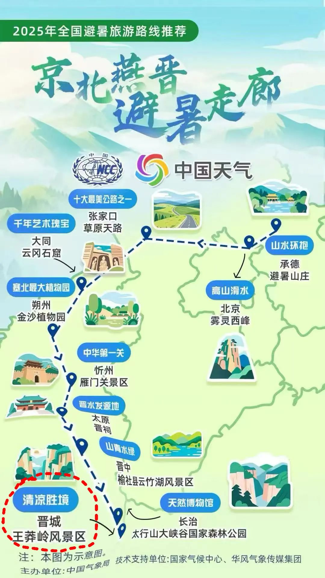 此次发布的路线覆盖21个省(自治区、直辖市)的60余个市。每条路线均被赋予特色名称,如“林海秘境·踏青寻幽”、“草原天路·北疆穿行”、“探云贵山水景观·享滇黔舒爽人生”以及途经山西的 “京北燕晋避暑走廊”等,晋城王莽岭景区成为京北燕晋避暑走廊中的关键一站。
